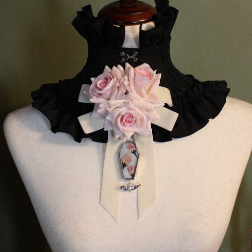 Dearly Departed Corsage - Ivory Ribbon, Pink Roses, Sakura
